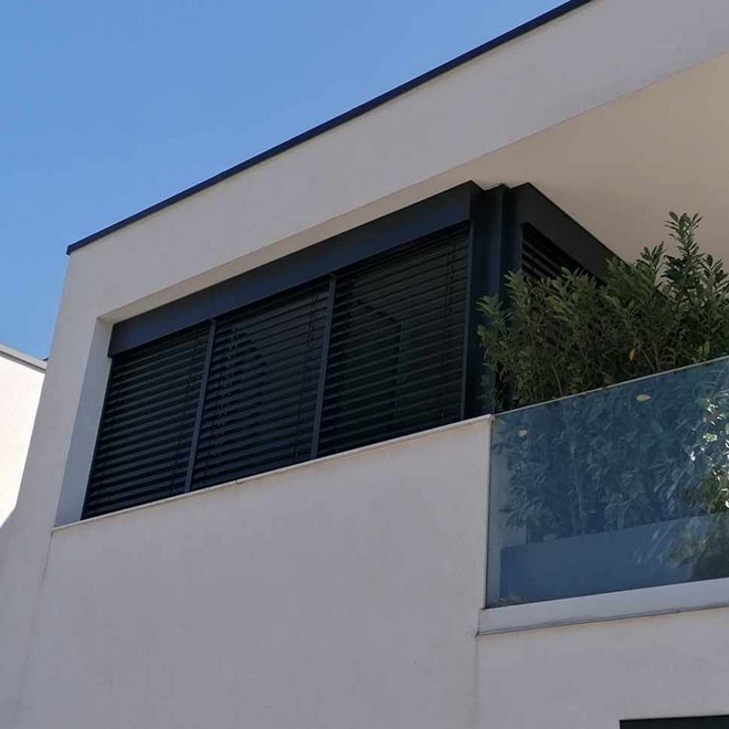 Az adaptív zsalúziák rugalmasan alkalmazkodnak a különféle homlokzati megoldásokhoz. Kiváló választás, ha az épület tervezése során szabadon szeretnénk a zsalúzia beépítését megoldani.